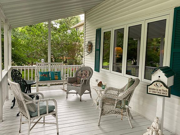 Rest Assured- In the quiet seclusion of a beautiful treed yard with large shady front porch perfect for sipping lemonade as the world carries on... The rustic paradise of original knotty pine interior warmly welcomes you inward. The gourmet kitchen has been custom made for large gatherings while the sun room makes you feel part of the large .57 acre yard with gardens and mature trees. Lovely 3/4 bath on main floor, full bath up, 2 fireplaces, attached garage, new mechanical's, roof & siding, make this one of a kind special home, a place to love & be loved.