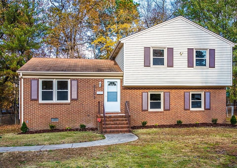 A MUST see beautiful spacious newly renovated home in the Walnut Hill area of Petersburg located on a quiet cul-de-sac. This tri-Level home features a beautiful kitchen with new custom cabinets and countertops, all new stainless steel appliances, breakfast bar and recess lighting, new hard wood floors that flow through out the entire first floor, laundry room with washer/dryer hook up, 4 bedrooms with new carpet and ceiling fans, 1/2 bath in master bedroom, additional bonus room down stairs with French doors that lead out on to a covered patio for outdoors seating, close to interstate, shopping, dining and Fort Lee. If space is what you need this is the home for you!