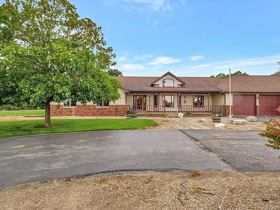 EUREKA...You have found it! First time offered our custom-built sprawling ranch sitting upon 3.46 glorious acres located approximately 2 miles North of Champaign, expansive driveway includes a circle asphalt drive convenient for guests. The front elevation has a large inviting covered front porch. While there is an appearance of a three-car garage however, it actually has a 4th stall that is assessable from the back side of the home designed primarily for RV access. Entering the North overhead door area, you will see the garage accesses to the fourth RV bay. There is an RV overhead garage door access from the rear of the home. A Garage drain helps make cleaning up the floors more efficient. No more paying RV storage fees as this home has you covered! Enjoy endless hours soaking up the morning sun rises while sitting under the covered front porch, upon entering the home you will immediately feel how spacious the floor plan is...Every room is large including the foyer entryway and right off that entry is a semi-private Living Room w/soaring ceiling & lots of windows overlooking the front porch & lawn. Back inside you will be wowed with the ample space offered in the generously sized bright & light Kitchen/FR Combo area. Loads of custom cabinets including a large pantry & spacious center island with seating. Plenty more countertops & cabinetry space offered around the built-in desk; our kitchen just keeps going! A nice formal Dining room is just off the kitchen, all areas in this house are bright and well lit, the family room eludes volume due to the vaulted ceiling & sizable room dimensions, wood burning fireplace with hearth, Family Room offering high vaulted ceilings, skylight & fireplace in addition to the back yard deck, Off the kitchen there is a huge utility room that is 13.2 x 12.2 offers a laundry closet & a convenient half bath. Generously sized owner's suite tucked away in what feels like a back private wing away from all the action. Comfortable and roomy with a walk-in closet & full bath w/jetted tub. Head down to the basement you will be ready to have some fun with the built-in bar along with loads of space and/or extra area to set up games, pool tables etc. This space lend itself to entertainment & fun! There is a half bath in the basement along with the utility room. Currently no egress window. Our subdivision is so calming & your neighbors are not sitting on top of you, very spacious lots. Solid Brick mailbox adds a nice touch to the exterior of the home. Great news we have a brand-new Furnace & AC in 9/23. 200 amps in There are too many things to write about - you just have to come see the home... If you enjoy being outside, we have a property waiting for you that is simply fabulous space, bring your ideas. Our neighborhood in the country is waiting for you and offers endless night skies that you can actually see! Lots of wildlife cruising through the backyard & you can surely catch sensational sunsets on this property. So many opportunities waiting. Enjoy lower taxes, quiet neighborhood, easy access to interstate, close to shopping, this property is a little neighborhood in the country, very laid back and this is where neighbors are neighborly! The home needs some TLC including but not limited to windows needing attention & roof is original. Our home is being sold in "As-Is Condition" Home is priced to reflect what work is needed.