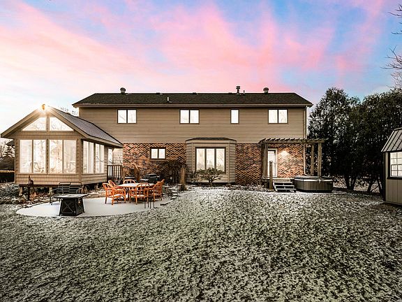 Nestled in coveted Hedgewood, this sprawling 1.5 story home with main level primary suite exudes class and sophistication, perfectly blending comfort with elegance. The expansive yard, adorned with meticulously maintained gardens, invites you into the arched portico as you enter this warm and welcoming home. Step into the two-story foyer with original parquet floors (shining from a recent polish) that make a graceful transition into the spacious vaulted family room with cozy carpet, built-ins and a grand wall-to-wall fireplace and hearth. Follow the parquet as you pass through the formal dining room featuring fresh white wainscoting and enjoy full views of the private lot through the expansive picture window, flooding the elegant space with natural light. Rich engineered hardwoods beckon you into the heart of this home, a custom kitchen that is a chef's delight! You'll be greeted by granite counters, velvety smooth maple cabinets, slate backsplash and an abundance of space for your culinary creations plus convenient walk-in pantry for extra storage. Quality stainless appliance suite features a double oven, range cooktop, side-by-side refrigerator and dishwasher. Guests will want to linger longer at the floating island with breakfast bar and expansive eat-in dining area, perfect for entertaining. Pass through the triple-slider glass doors into an impressive east-facing sunroom addition with vaulted ceilings for year round enjoyment of the changing seasons and you'll find just the right spot to catch a stunning morning sunrise. Nearby mudroom offers main level laundry, wash bin and additional counter space and double closet plus easy access to the expansive two-car insulated attached garage with bump out offering plenty of space for toys and tinkering! Main floor updated half bath conveniently located just off the dining room is great for guests. The first floor primary suite nestled on the north side of the home offers a quiet retreat from everyday stress, adorned in rich cherry hardwoods and inviting cool gray color scheme. Attached ensuite features custom travertine tile, expansive double sink vanity with granite counters, a separate get-ready nook with makeup counter, sizable walk-in shower with double shower heads, plus his and hers walk-in closets. Exterior access guides you to your very own private patio so you can step right into the hot tub and soak off the stress of the day! Follow the beautifully finished hardwood stairs to the second level of this expansive home to find three spacious bedrooms, and abundance of storage options (don't miss the secret room at the top of the stairs perfect for a play space or quiet book nook), and another full bath featuring double sink vanity with gorgeous granite and full size tub/shower combo. The inviting lower level of this sprawling home offers equally impressive living space featuring a sizable second family room perfect for movies or game night, plus three additional flex areas offering space for hobbies, a devoted workshop with task lighting, an expansive bench and wall-to-wall storage, plus another large flex space for fitness or possible conversion to a 5th bedroom if desired. A third beautifully updated full bath with walk-in shower offers convenience for long-term guests plus egress and 8' ceilings add to the main level feel of this special space! Hedgewood is known for it's sprawling, well cared for lots and this home is no exception. Enjoy the newly finished lower level stamped patio, a tree-lined deep back lot for privacy and as spring rolls in, you'll enjoy an impressive display of established perennials surrounding you with color! Nearby Northpoint Elementary and bus service to coveted Unit 5 Schools plus easy access to Veterans Parkway and Interstate 55/74 make this home an ideal spot. Just the right blend of size, style and space to enjoy the tranquil surroundings and charm of Hedgewood... Come see all this home has to offer!