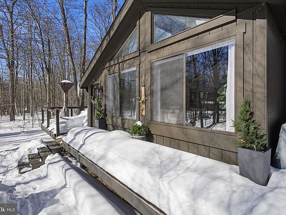 WOW! Fantastic home in the Timber Trails community! Tucked into its own wooded retreat, this 3-bedroom, 2-bath ranch style home offers privacy, character, and that classic Pocono feel. Inside, you’ll find beautiful hardwood floors and unique barn wood accents that add warmth throughout the home. The foyer opens into a light-filled living room with cathedral ceilings and a stone-surround, wood-burning fireplace—perfect for cozy nights in. The layout flows into a generous dining area and a stylish, galley style kitchen. Brand new appliances! A screened porch provides a peaceful spot to enjoy the surrounding nature, while a full-size washer and dryer add everyday convenience. The private primary suite features its own full bath, large closet, and sliding doors leading to the wraparound deck. Set on a 0.81-acre corner lot, the home also includes a one-car garage plus ample storage in the attic and crawl space. A true Pocono escape with comfort, charm, and room to breathe. Timber Trails gated community has many amenities including a clubhouse, teen center, fitness center, tennis courts, playground, indoor and outdoor pools, golf course, and outdoor ice skating. ALSO within Timber Trails: Tall Timber Lake Access, a beach and playground area!