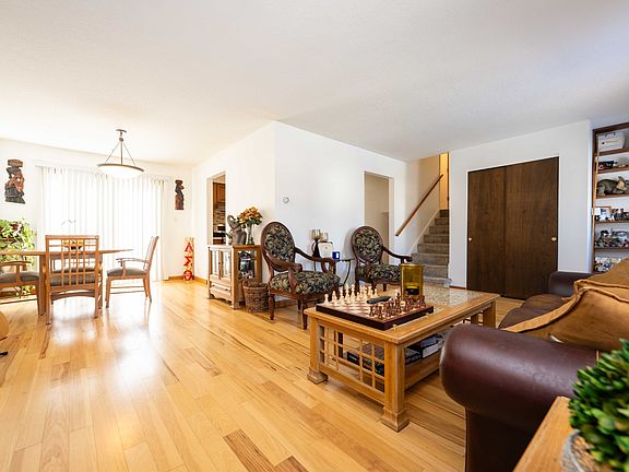 This tri-level home in Southwood features a bright living room with beautiful, engineered wood floors. The open L-shaped living-dining area is a plus, featuring large windows in the front, and a south-facing sliding glass door in the back. Some of the kitchen highlights are solid raised panel oak cabinets, mosaic tile backsplash, and under-cabinet lighting and an LG smart stove/range with a double oven that is vented to the outside. Upstairs, you'll find three carpeted bedrooms and in a comprehensively updated bathroom with a dual vanity, additional storage above the toilet, and new tile surround, plumbing fixtures, and soft-close cabinets. One of the bedrooms has direct access to the ensuite bathroom, which can also be accessed from the hallway. The lower level is perfect for entertaining, featuring heated floors, a cozy fireplace, and a wet bar. The laundry room on this level houses a 50-gallon water heater. The attached garage, which has a new steel garage door, is also accessible from this level. The lower-level bathroom has also been updated with a new shower surround. Additionally, the home has a new privacy fence, and the roof is less than five years old. The home has been pre-inspected for your convenience.