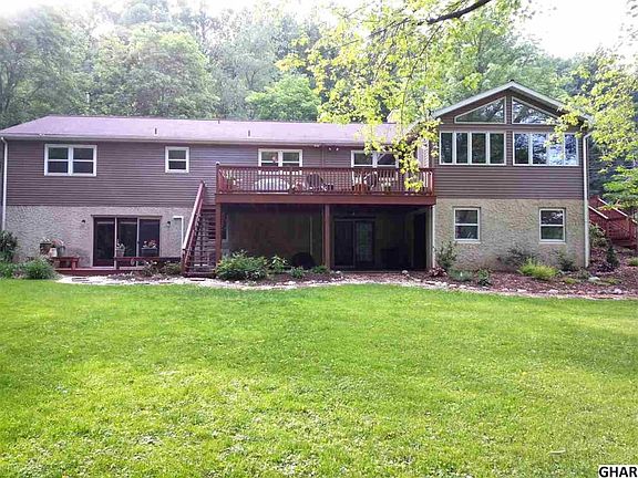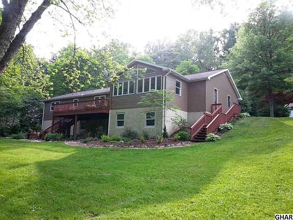 Beautiful exceptional well maintained ranch in Derry Township. Over 2100 Square feet on the 1st floor, 3 BR, 2 1/2 baths. Great room overlooks an exceptional view of rear yard surrounded by trees, cathedral ceiling, large eat-in kitchen, hardwood flooring, 2 mountain stone fireplaces. Exposed walk-out lower level with half bath. The possibilities are endless for this area. Two decks overlooking this pristine 1/2 acre lot.