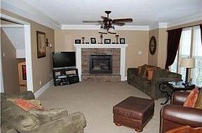 Covered Front Porch* Finished Basement* Formal Dining Room* This home looks like a Model Home! Hardwood Floor walk-way. Custom Designed Cabinets. Lush Landscaped Acre+ Lot w/ Privacy Fence. Master Bedroom has HUGE walk-in closet. Full Bath in basement. Pretty Brick Fireplace in Great Room opens into Kitchen/Dining Area. Custom Blinds Stay!