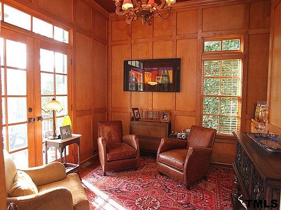 GORGEOUS HAYES BARTON HOUSE! COVERED FRONT PORCH, COVERED PORCH & STONE PATIO WITH BUILTIN GRILL & OUTDOOR FIREPLACE. DETACHED ONE CAR GARAGE. WONDERFUL DETAILS INSIDE: BRAZILIAN CHERRY HARDWOOD FLOORS, 10' CEILINGS, COFFERED DINING ROOM CEILING, MAPLE PANELING FLOOR TO CEILING IN STUDY, FAMILY ROOM WITH MASONRY FIREPLACE & MAPLE BUILTINS, 1ST FLOOR MASTER, 2ND FLOOR 3 BEDROOMS, 2 FULL BATHROOMS + BONUS ROOM, 3RD FLOOR MEDIA ROOM COMES EQUIPPED W/ PROJECTOR & SCREEN, BERBER CARPET & BEAUTIFUL TRIM.