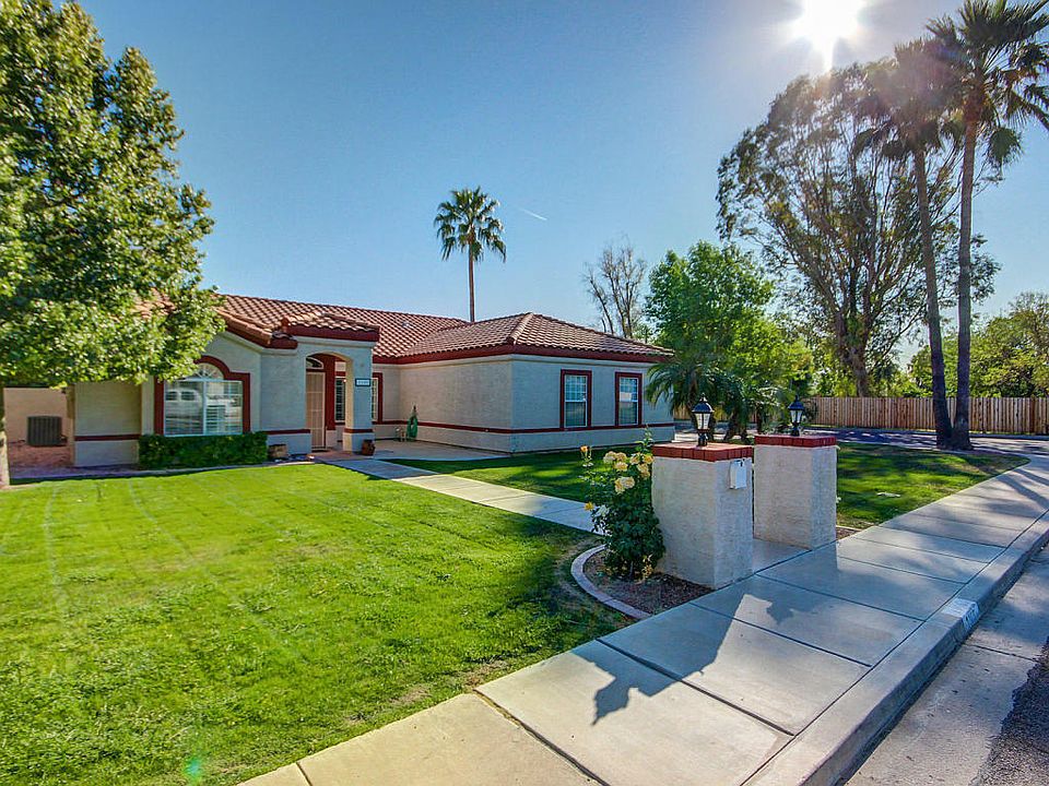 Custom built home in old citrus grove area.Mature Orange Apple and Lemon tree.In ground Play pool, irraigation, covered patio. Huge 3 car garage with extended workshop area. Side yard for RV parking. Upgraded kitchen custom cabinetry with soft close feature, and granite countertops by Superior Stone.Spacious open plan, formal living room/den. Formal dining room and separate breakfast area. Master suite with separate exit to patio/ pool.Master bath upgraded tile and seamless glass shower stall with jacuzzi style tub. Walk in closet and private commode. Louvered shutters on all windows plus sunscreens. Roman shades and Hunter Douglas shades on some windows. New carpeting in rooms, easy care tile throughout. Wood burning fireplace. Brand new hot water heater. Home warranty offered.