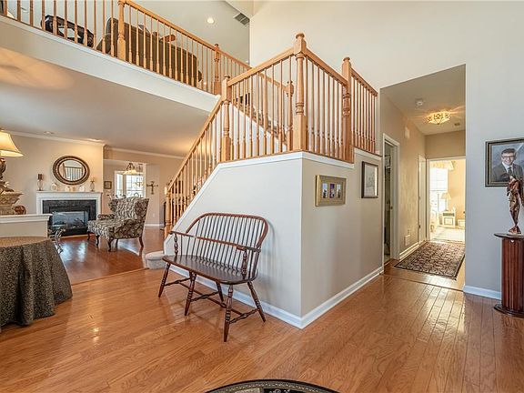 Step into this beautifully maintained 3 bedroom/3 bath residence in the Four Seasons at Farmington Active Adult Community, perfectly situated along the 4th green of the community's 6-hole golf course. The thoughtfully designed layout features open concept living spaces ideal for gatherings, a versatile loft space, plus a 1st floor primary suite, private office, and additional bedrooms on both the first and second floors, each with an accompanying full bath. Ample storage is a key feature, with numerous closets and a large, dedicated storage room. Numerous upgrades and updates include the stunning hardwood floors to the 42” cabinets with slider inserts, granite countertops, a dual-sided fireplace, and a recently installed furnace. Relax on the custom paver patio or back deck, enjoying picturesque views of the golf course. The HOA ensures a truly carefree lifestyle, covering trash, snow removal, lawn care, pool, gym/clubhouse, golf, Bocce, and tennis courts.