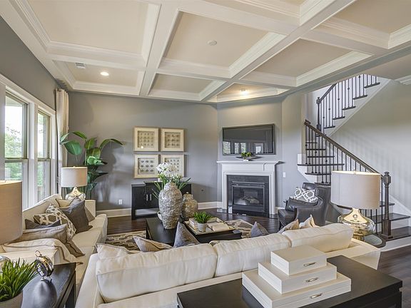 Stunning home in premium location within a cul-de-sac & a wooded backyard. Full finished walk-out BASEMENT with a bedroom, bathroom & 2 living areas. Owners suite on 1st floor, 2-story great room with floor to ceiling stone fireplace. Gourmet kitchen with custom cabinetry to the ceiling & farmhouse sink, tankless hot water heater, home warranty, covered porches on all 3 levels, Choose your own flooring, paint, and light fixtures. $10,000 buyer paid closing costs with Pulte Mortgage.