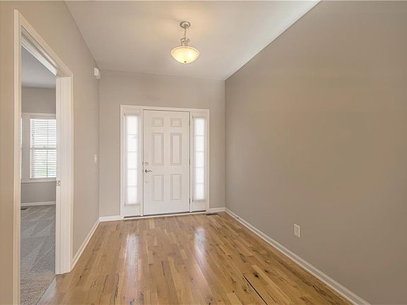 Another available hard to find villa in Kearney! Two bedrooms, two bathrooms, wood floors in the large entry, great room and kitchen. This floor plan Nicole "A" has two doors from the garage that you can use, one will walk into the pantry for unloading the groceries into the pantry and the other to the drop zone at the entry area. The open kitchen flow offers ample cabinets and large island and pantry, custom cabinets and granite counter tops.  Easy laundry room access from the owner's walk-in closet or entry way. Wheelchair assessable throughout the main level. Some new paining and refinished new floors. The home has been professionally cleaned. Sit on the covered deck and relax or walk the 4-mile city's walking trail.  Finish the lower level of the spacious walk out basement at a later date if you like. Gently lived in villa with a covered deck and stairs to the lower level walkout. HOA covers snow removal, sprinkler watering and mowing.   Buyer's agent to verify taxes.