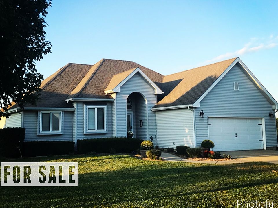 Beautiful ranch style home in a great neighborhood on the edge of the city. The gorgeous view from the backyard is breathtaking and you can enjoy it year-round with a covered patio. Inside the home features an open floorplan upstairs with vaulted ceilings and rare oversized ceilings downstairs. The full basement is roughed in for a wet bar and includes a massive storage/utility room with custom built-in storage shelves. This home is located on top of a hill providing an excellent view of your surroundings and nearby lakes without the fear of flooding. The home is very well maintained and is move-in ready.