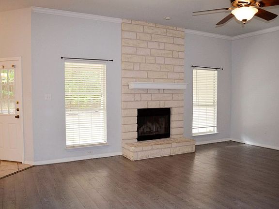 Inviting stone fireplaceTwo-car garagePrivacy-fenced yardLaundry hookupsCovered patioDedicated dining areaJetted tub