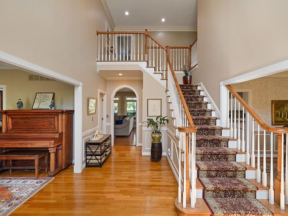 Gracious traditional home on quiet cul-de-sac location in prestigious Hartland neighborhood. Large covered deck overlooking spacious back yard and inground pool. Five bedrooms total, each has direct access to full bath. Primary suite features coffered ceilings, separate sitting area with fireplace and luxurious bath with large shower, soaking tub and huge walk-in closet. Finished basement includes large game room, home theater, built-in bar and lots of storage. Main level features separate living room, great dining room for large gatherings , generous family room with masonry fireplace flanked by built-ins and a chef's kitchen with Jennair cooktop, double ovens, granite counters and adjoining walk-in pantry. Exquisite woodwork throughout, hardwood floors throughout much of the main level, newer carpet upstairs. This home truly has something for everyone.