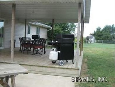 Great family home - 1 story, 3 bedrooms, 2 3/4 baths, large kitchen open to dining area, sun room, living room. Covered deck opens to fenced yard. Playground equipment stays. Attached 2 car garage - 2 wells - 1 mile from Vandalia.