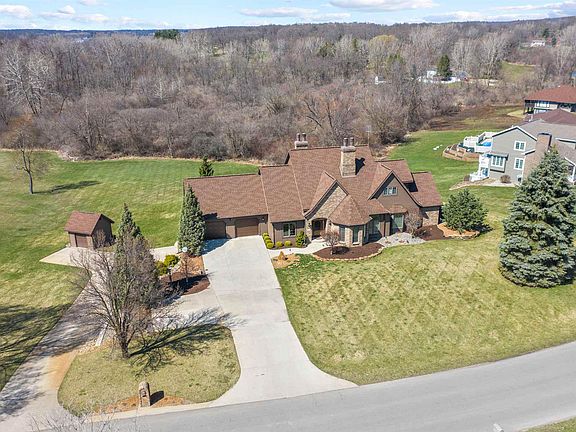 Family and friends will be thrilled by the stylish accommodations at this gorgeous mezzanine style estate on 1.25 acres of scenic property in Angola! Quality is on display throughout, starting with magnificent architecture, high end finishes, and gorgeous wrought iron railings imported from Italy. This home is truly spacious: There are 5 bedrooms, 4.5 baths, decks and a finished walkout basement leading to the wonderful inground pool area. The gourmet kitchen is every chef's dream, featuring amazing custom cabinets, a large island, granite countertops and backsplash, double ovens, and a huge gas range with its own filling station. Enjoy dinner in the elegant ambience of the formal dining room tucked away behind captivating wrought iron double doors. With PARKING FOR 6 VEHICLES IN 2 ATTACHED GARAGES- one featuring a kitchen- your guests will be dazzled by s multitude of high-end amenities. Must be seen!