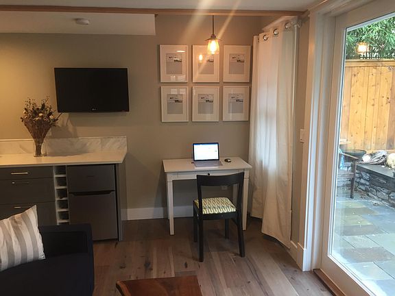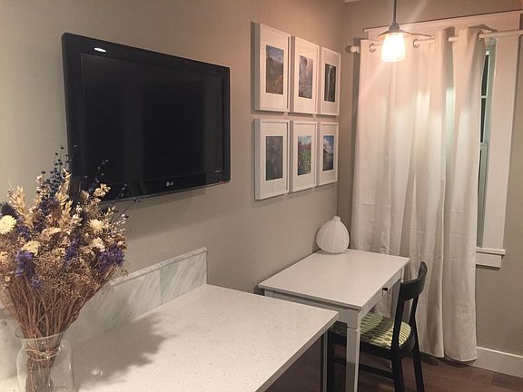 Fully detached and furnished private backyard cottage. "Keystone Cottage" is located in the heart of Tangletown neighborhood on a quiet street overlooking Keystone Park and just two blocks from Green Lake. Private key-less entry, bath, kitchenette and lofted bedroom with king size bed. The Cottage sleeps 2 adults. With a fully stocked kitchen, Egyptian cotton bedding, Smart TV, Wifi (40mps), A/C and easy on-street parking it is the perfect corporate or 3-12mth rental. Living area: ~450 sqft. Hardwood Hickory floors, Pottery Barn love seat, desk/table, eco-friendly heat and AC, TV and WiFi. Wide French doors lead into shared yard with large bluestone patio and Weber gas grill. Bathroom: Carrera marble throughout with large 3'x5' walk-in shower. Kitchen: Compact freezer/refrigerator, large sink, dual induction cook top, coffee machine, toaster, tea kettle, bone china dinnerware, and pots and pans. All standard gadgets and utensils provided; if we missed anything just ask! Lofted Bedroom: Ascend the half spiral staircase to the bedroom featuring hardwood floors, a plush King size bed, closet and window reading nook. South and West facing windows for maximum light. FULLY FURNISHED COTTAGE! Available Jan 20th - looking for 6-12mth leases. Tenant maintains the unit, no cleaning service provided. $1600/mth + $200/mth for utilities (includes water, heat, electricity, internet)