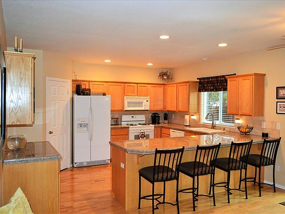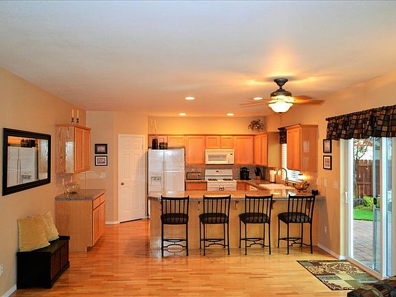 Move in Ready! Immaculate 4 bedroom, 3 bath home with filtered Cascade Mountain views. Big kitchen with granite counters and breakfast bar. Formal dining area. Fireplace in family room and inviting separate living room. Master bedroom has sunset views and double vanity in master bath. Manicured yard, front and back. Completely fenced. Potential RV parking on side of house. Backyard 8x10 shed. Patio for outdoor entertaining and BBQ. Two blocks from Dry Canyon trails.