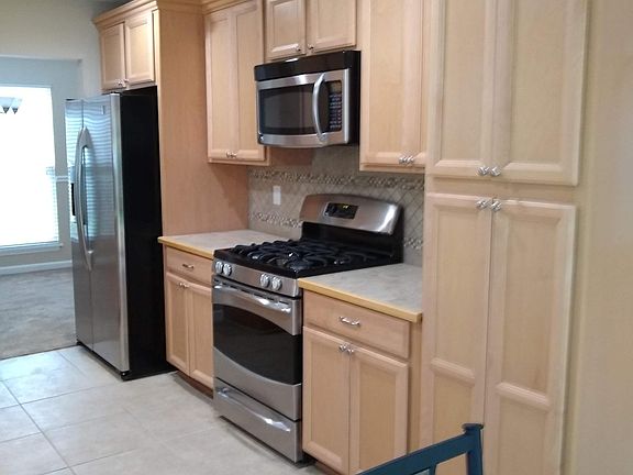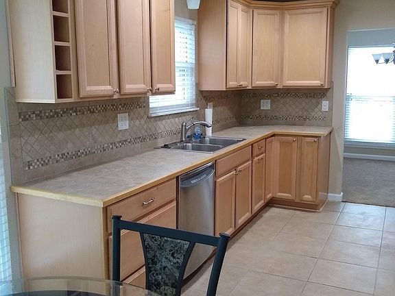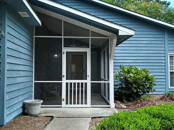 Open great room design with high ceilings & stone fireplace. Large master suite with dual walk-in closets. Private culdesac lot with mature landscaping and trees, large fenced backyard. Screened in front porch and back patio. New carpet, new paint, updated kitchen/bathrooms. Front loading washer/dryer, built in microwave, and refrigerator with ice maker. All bedrooms have ceiling fans. 2 car garage with painted floors. Lawn service included.