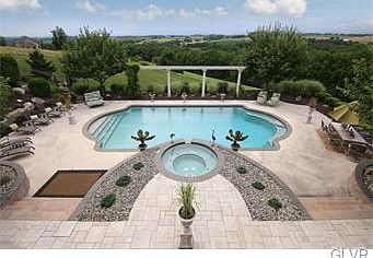 Italianate architecture is evident in this classic custom built estate on 45+ acres with Tuscany type views of the hillsides & valleys. Situated on a hill for a dramatic elevation with pronounced landscaping designed for a private villa feel. This home is sumptuous, beautiful and proudly exhibits its own class. The entrance is dramatic, proud & inviting in a very classy way. Marble foyer and curved staircase with pewter railings, an enormous kitchen, cherry paneled office, massive gold leaf fireplace & wall of windows of the great room look out onto the open view. Stunning views from the outdoor kitchen of the entertaining complex with pool, Jacuzzi, arbors, columns & seating areas. 7 bedrooms, 7 baths, 4 car garage, radiant heat. Fully finished walk out lower level includes a gym, theater, gorgeous cherry paneled bar area, game & media room.