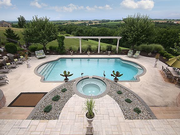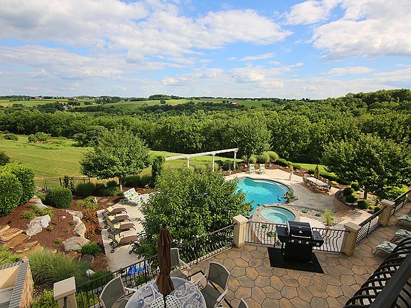 Italianate architecture is evident in this classic custom built estate with Tuscany type views of the hillsides & valleys. Situated on a hill for a dramatic elevation with pronounced landscaping designed for a private villa feel. This home is sumptuous, beautiful and proudly exhibits its own class. The entrance is dramatic, proud & inviting in a very classy way. Marble foyer and curved staircase with pewter railings, an enormous kitchen, cherry paneled office, massive gold leaf fireplace & wall of windows of the great room look out onto the open view. Stunning views from the outdoor kitchen of the entertaining complex with pool, Jacuzzi, arbors, columns & seating areas. 7 bedrooms, 7 baths, 4 car garage, radiant heat. Fully finished walk out lower level includes a gym, theater, gorgeous cherry paneled bar area, game & media room. There is 45 acres that could be for sale w/ this property. Land could be developed to 3 lots that would not affect the privacy of this property.