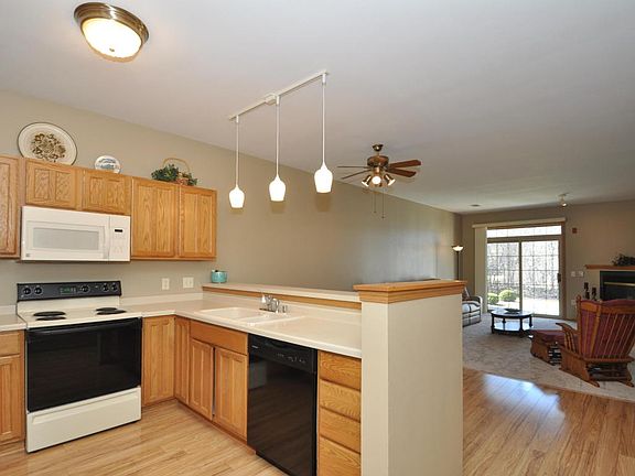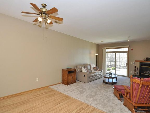 The wonderful first floor condo is ready for you to move in to. Freshly painted interior and new carpet throughout! The awesome wood laminate floor in kitchen and entry areas are sure to please you. Open concept w/gas fireplace, patio doors leading to patio with a private backdrop. Large bedrooms with walk in closets, and 2 full baths, 9' ceilings and an attached garage. All appliances included. Enjoy the amenities that this project has to offer, the clubhouse with HUGE party room w/fireplace, full kitchen, whirlpool tub, exercise room and outdoor pool. Talk about EASY living! Cat(s) allowed.