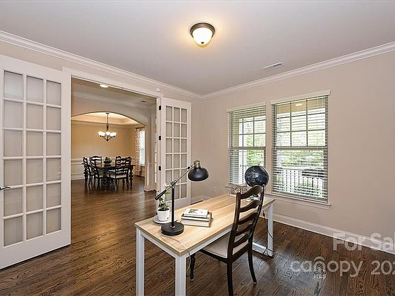 MULTIPLE OFFERS HIGHEST/BEST DUE SUNDAY MAY 1st @ 4pm. Well-maintained home on nearly an acre lot in highly sought after Weddington School District! Step inside the foyer to find your private office, dining room & open living area w/stunning coffered ceiling & cozy fireplace. Just off the living area is a spacious in-law/guest suite with full bath & sitting area! The kitchen features 42" raised panel cabinets w/ sliding drawers, large kitchen island w/ bar seating & storage, tile backsplash, granite counters & a light-filled breakfast area that leads to the screened-in porch & beautiful views of the wooded backyard. Upstairs is the primary suite w/ vaulted ceilings, two raised vanities, garden tub, walk-in shower & huge walk-in closet w/attic access, 3 secondary bedrooms, 2 baths & a bonus room. Other features include: site finished hardwoods throughout most of main, oak treads @ stairs, custom front door, 9ft ceilings(2nd floor), side-load garage,screened porch, patio & fenced yard.