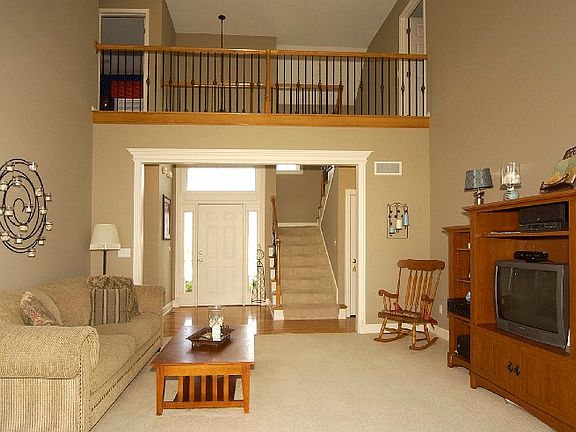 Lease Purchase or Lease with Option to Purchase. Accredited with distinction in performance Kearney schools! Well maintained 1.5 story beautiful home. New roof & ext paint 2010. Underground dog fence, alarm system & water softener staying. Balcony overlooks large great room with vaulted ceiling. Gorgeous Master suite, master bath with large walk in closet. Large unfinished basement with tonsof potential & high ceilings. NO E TAX!
