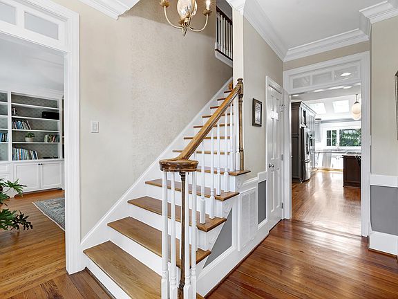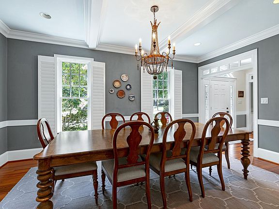 Set on a peaceful cul-de-sac with no through traffic, this 4-bed, 4-bath home offers nearly 4,300 sq ft of beautifully updated living. A major two-story rear addition expands the living space with a renovated kitchen and double sunrooms. All new Pella windows, new skylights, updated HVAC systems on every level, and major plumbing replacement mean the big projects are done. Quiet location, quality finishes, and a strong price point make this one of the best values in North Raleigh. Light-filled interiors begin with a welcoming foyer and continue into a versatile living/billiards room with built-ins and a gas fireplace. The formal dining room features a beamed ceiling and space to host a crowd. The kitchen includes a center island, gas cooktop, wet bar, granite counters, new skylights, and a sunny breakfast banquette. Two adjoining sunrooms create relaxed spaces for reading, entertaining, or enjoying the quiet setting. The primary suite offers a fireplace, double closets, and a newly renovated bath. Upstairs are two additional bedrooms, a full bath, and a spacious bonus room with rear-stair access. The third floor provides a private guest suite with full bath. Outside, a two-level deck overlooks a landscaped yard with magnolias, hydrangeas, and towering oaks, backing to a creek and forest.