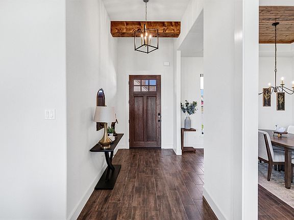 What really makes this one special is it is one of TTB's beautiful model homes! Model home mean, all the upgraded touches! The main living area is open, bright, and made for real life, featuring exposed wood beams, a sleek fireplace, and oversized windows that bring in natural light and showcase peaceful views. The kitchen is a true centerpiece with warm wood tone cabinetry, quartz countertops, an oversized island with seating, and statement lighting that gives the space a custom, designer feel.