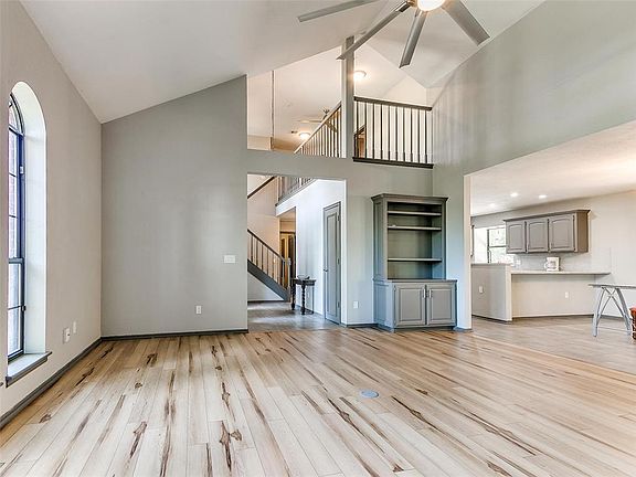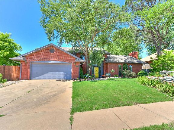 Welcome home to the coveted Rolling Hills addition of West Norman. Whimsical curb appeal and darling walkway lead you to a gorgeous open floor plan with neutral hues perfectly accented by darker wood tones and pulled together stunningly by the knotty wood-look flooring. Spacious entry opens to the living room featuring a mason fireplace, built-in lit shelving, vaulted ceiling, and beautiful almost floor-to-ceiling arched windows. The kitchen boasts granite countertops, tile backsplash, breakfast bar PLUS center island workspace, and a dream cooktop with a built-in microwave and oven. All bedrooms offer ceiling fans and plush carpeted flooring. The outback oasis features a covered but open patio, large pool, and mason firepit all surrounded by terraced lawn space and privacy fencing. Make this home yours to enjoy the gorgeous Oklahoma sunsets, ease of access to I-35, and close proximity to restaurants, shopping, and the University of Oklahoma. Call today to schedule your tour.
