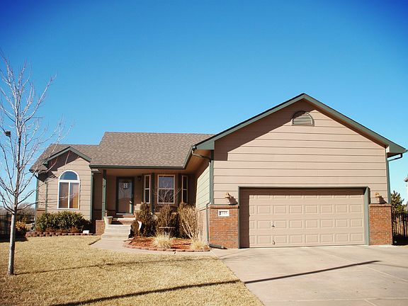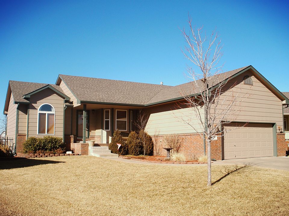 Beautiful home on a lake lot in the Goddard School district! This two owner home was built in 2003 and has been meticulously cared for. Split level floor plan with master and two bedrooms on main level. Many upgrades including a mid level walkout, viewout basement, oil rubbed bronze fixtures, tile in master bath/laundry/front entrance/back entrance, stainless steel appliances, wood blinds throughout and a beautiful stone fireplace. Master bath includes his and her walk in closets and separate water closet. Kitchen cabinets feature crown molding and laundry room has built-in cabinets above washer and dryer. Fully finished basement includes a bedroom with a walk in closet, bathroom, built-in storage cabinets, living area prewired for surround sound and a large storage room with built in shelving. Huge back yard right on the lake. Yard is fully fenced with premium wrought iron fencing. Yard has a sprinkler system, trees and completed landscaping. Multi-level deck that was stained 2 years ago and patio make for great outside entertaining. Over sized two car garage has plenty of space for large vehicles in addition to storage and features fluorescent lighting. Attic above garage is lighted and decked for additional storage. This home is a must-see!! Water heater replaced this winter. Garbage disposal Is less than 2 years old. Sump pump is less than 6 months old. The house also has a water filtration system. Willing to work with buyers agent.