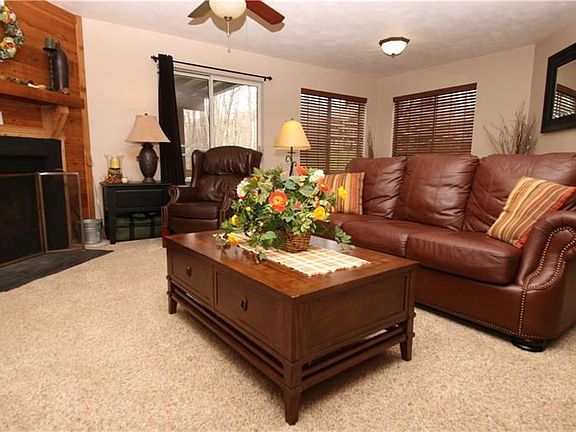 Beautiful, fully furnished, end-unit Condo backing the woods at Hidden Valley Resort! Spend your summers and winters in the mountains in this updated two bedroom, two bathroom condo that's move in condition. Enjoy the wood burning fireplace or relaxing on the back deck watching wildlife. Updates include new flooring, stainless steel appliances and furniture. Within walking distance to the South Ridge Swimming Pool, Basketball Court, Bocce, and Playground. Only an hour to Pittsburgh, this is the ideal getaway in the mountains!
