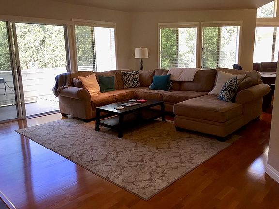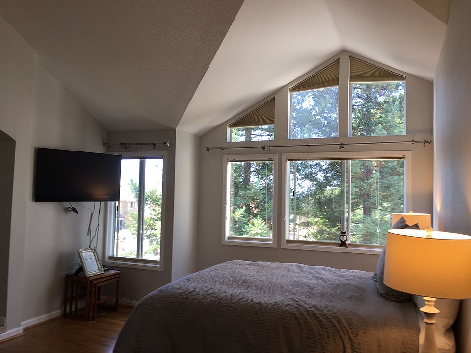 Imagine sipping a glass of wine while relaxing on your PRIVATE balcony and viewing the greenbelt with abundant wildlife, including many birds, deer, turkeys and nearby winter creek! UPSTAIRS, beautiful, END UNIT, upscale/executive, QUIET condo in lovely Stonefield in Fountaingrove. VAULTED CEILINGS, second story, one level, SPACIOUS, 1600 sq ft, 2 BR, 2.5 Ba, w/ Dual Master Suites.