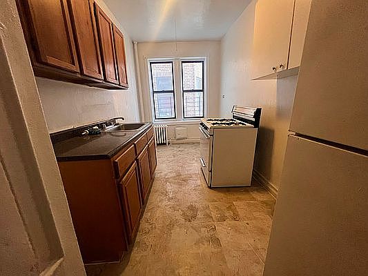 Studio apartment with separate kitchen ! Rent includes heat & water 3 blocks away from the train !! The building is located a few blocks away from street where you have tons of options from shopping, to eating, or you can wine and dine at local restaurants, and bars Rent stabilized Small pets ok , live in super . Must have good credit .