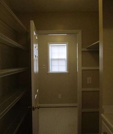 This house is so cute! On a quiet cul-de sac--downstairs master with bay window, and a great master bath with garden tub, separate shower & Walk-in closet. Soaring ceiling in living room, wood floors in dining area, and another half bath off kitchen makes for great entertaining. Great pantry area between kitchen and laundry. Two more bedrooms plus another bath upstairs. Ample storage inside, plus an outbuilding. Two pets welcome with fee. Welcome home.