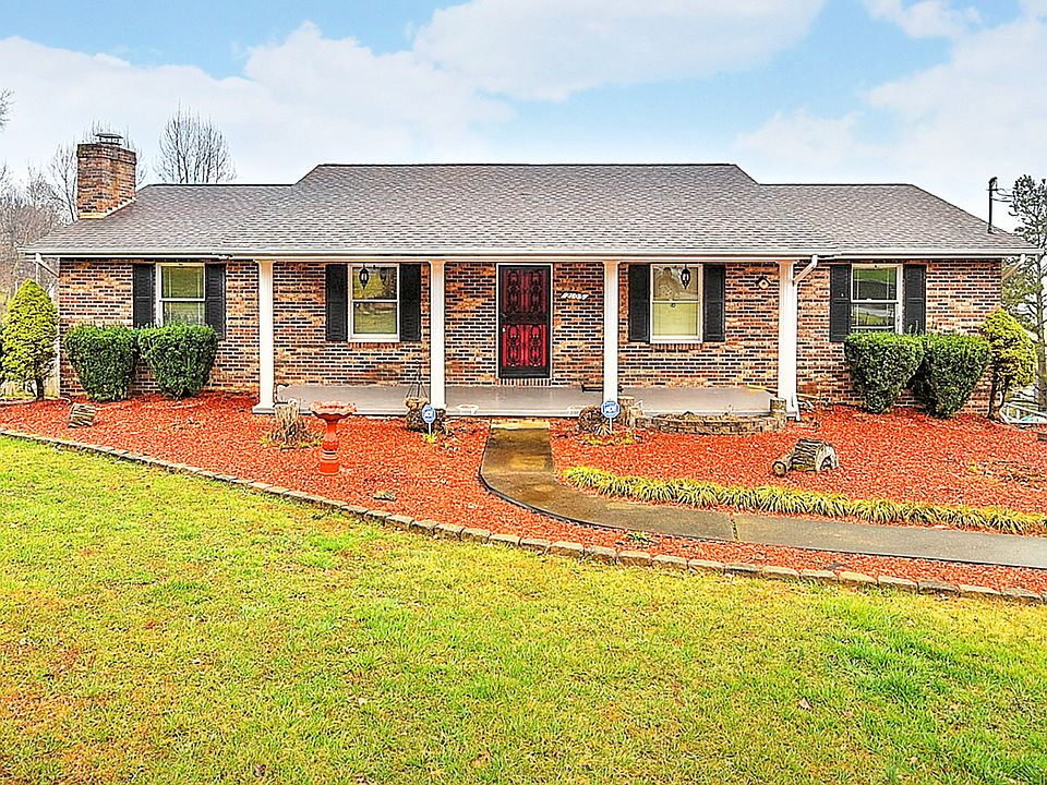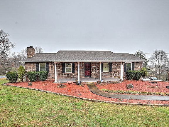 Made for entertaining! Welcome your friends to this 3 bedroom, 3 bath brick ranch with inside and outside entertaining areas. Kitchen with new granite countertop in 2020 that opens to a large dining area. Sunlight spills through the window-studded massive sunroom that also has a beautiful soaring wood ceiling. The finished downstairs boasts a full bath and a huge fireplace warmed den with walkout to a private hot tub and patio area. In-ground pool with large fenced back yard perfect for a garden and beautiful mountain views from back deck. Come see today!