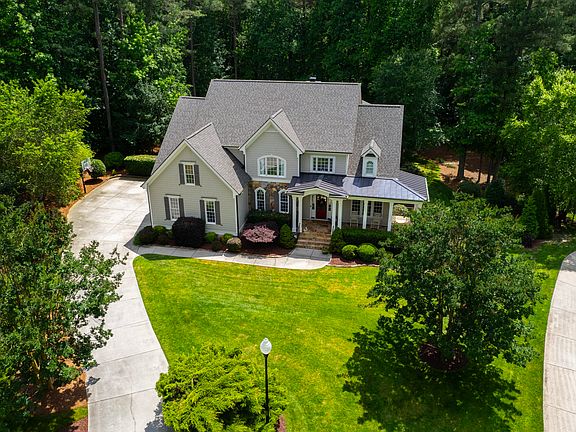 Nestled on one of the most desirable lots in North Raleigh, this meticulously-maintained custom-built home presents an exceptional blend of luxury, comfort, and tranquility. Immaculately cared for, this residence feels brand new, offering an unparalleled living experience both inside and out. Surrounded by lush, professional landscaping, the property provides a private retreat that's perfect for quiet relaxation or entertaining loved ones. The expansive back deck, made from Ipe wood, features both covered and open areas, while seasonal water views add to the serene ambiance. The large wrap-around front porch, with its elegant stone flooring, invites you to relax and enjoy the beauty of your surroundings. Step inside to discover a seamless flow of well-designed spaces that combine style and functionality. Sunlight pours into the family room through two-story windows, creating a warm and inviting atmosphere. The updated kitchen is a chef's dream, and the first-floor guest suite provides convenient accommodations for visitors. The finished basement is a true standout, with ample room for a home gym and plenty of storage. Upstairs, you'll find four generously-sized bedrooms, including the luxurious owner's suite, along with a versatile bonus room perfect for a home office. The home also boasts a newly-installed roof featuring premium CertainTeed Landmark architectural shingles, ensuring lasting durability. Outside, the pool-ready backyard offers endless possibilities for outdoor living. This home is ideally located for easy access to Research Triangle Park, making commuting a breeze. While the property features five bedrooms (four upstairs and one downstairs), with an optional sixth bedroom, please note that the septic system is permitted for four bedrooms. This pristine home is truly in like-new condition and is ready for its next fortunate owner to move in and enjoy.
