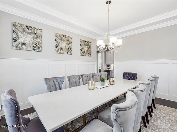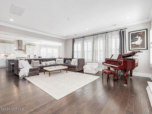 Come step inside this spacious and elegant 3 story home with bountiful natural light. Starting with a welcoming foyer, The Monterey plan boast a 1st floor guest room with ensuite full bath, powder room, office with French glass doors and access to the oversized screened porch, expansive dining room with butler's pantry connecting the bright and cheerful kitchen wearing gorgeous quartz counter tops, kitchen dining and large family room. The office also has a built-in beautiful double sided one-of-a-kind marble top desk with waterfall side. The second floor is super functional for the busy family with 3 bedrooms, 2 baths, open loft area perfect for a study of lounging area. All of this plus the primary suite complete with his and her closets, his and her bathroom vanities, soaking tub, separate water closet, and access to the laundry room. The third floor is a treat with over 400 sq ft of flex space complete with full bath. Ideal for a 6th bedroom or bonus room. Large 2 Car garage large enough to support 2 cars and yes ,a vehicle the size of a Suburban with space left over for bikes and storage. Sitting on a corner lot the home offers abundant outdoor entertaining space with extended deck and screened porch. Located steps from the bus stop, mailboxes and dog station this home is conveniently located within 1.5 miles of all Heritage schools, dining, shopping, drug stores, Publix and HARRIS TEETER. Come and experience this move in ready home. You won't want to leave!!