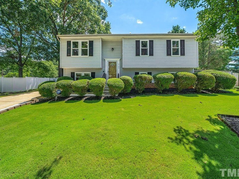 Handsome 4 bdrm, 3 full bath split level conveniently located close to I-40, the Farmer's Market, & NCSU. New HVAC & water heater in 2020 and windows in 2021. Beautifully manicured yard (new sod, mulch, retention wall), fenced flat yard, & awesome back deck extension (storage beneath). Gracious living room with fireplace and lovely dining area that opens onto deck. Kitchen with granite counters and stainless steel appliances. Several flex space options -- another "living room", bdrm & office on lower and tons of storage/utility space. No HOA!