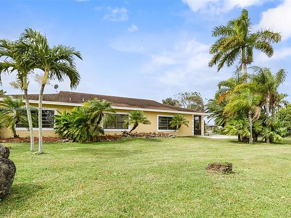 Private Redland living at it's best on 2.2 acres. Main home is a 4bed/4bath pool home (pool 20x40x9). Main Master wing has updated bath(handicap accessible), sitting area, sunroom & entrance. 3 other bedrooms have their own bathrooms w/ LG. closets, making every room feel like a primary's room. Well kept w/functional open floor plan. Kitchen & one bedroom open up to patio & pool area. The main home is split by fence from a 2nd building grandfathered in after Andrew with its's own septic/well. Currently has a double wide that used to be offices, now used as rental. Could be a GUEST HOUSE. 3 horse stall w/tack room being used as storage/garage but can be easily converted back for HORSES. Roof 2008. Room for RV, boats, etc.