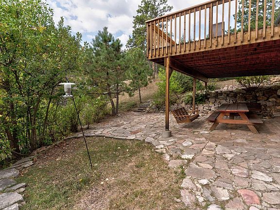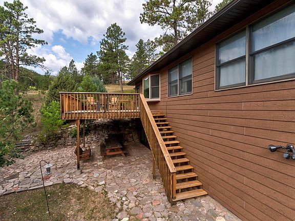 Are you wanting to live in the Black Hills? Like really live in the Black Hills? Surrounded by Ponderosa pines, rock canyons, and wildlife? This quaint home sits on a unique and beautiful 12 + acres that will make you feel like you have driven to the center of the Black Hills, rather than the actual commute of 10 minutes to Sturgis, 20 minutes to Rapid City, or 30 minutes to Spearfish. Nearly all on pavement! Enjoy views of Bear Butte, the quiet solitude of bordering Black Hills National Forest, and a close up view of a rock canyon from your deck. Inside cozy wide plank pine floors make you feel right at home in this 4 bedroom, two bath home. Enjoy the warmth of the wood burning stove in the lower level and a view outside through sliding glass doors onto a rock patio. The current owner has invested in new siding, roof, deck, and screens so you won't need to worry.