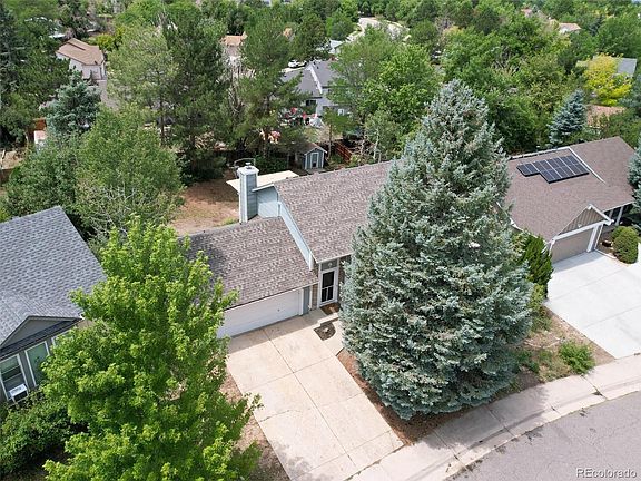 Offer Received. NO HOA!! This sweet home is 1858 square feet of memories waiting to be made on huge .19 acre private fenced lot in the Parkborough Neighborhood * 4 bedrooms * 2 Baths * Split Foyer/open concept * large and bright kitchen with plenty of counter space * Dining has access to sliding doors out to sunroom * both upper-level bedrooms have walk-in closets * Lots of windows * Plenty of storage * Flex space in lower level has room for 2nd living room (theater? playroom? game room? study?) * Lower level has 2 bedrooms * lower level laundry * lower level bath has custom tile and newer updates * Sunroom is added square footage * private fenced yard is .19 acres with space to play and garden * Mature trees * Picnic table * fire pit * swing * 2 sheds * Garage has plenty of built-in storage and workbench as well as wall A/C unit and fan/light * blocks from Pioneer Park * Minutes to shopping & Dining * Fiber optic cable is available * Cherry Creek School District * This home comes with Solar *