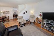 Immaculately maintained 4 bdrm, 3.5 bath TH. 9' ceilings on the main floor and vaulted ceilings in all upstairs bdrms. Stunning spacious kitchen fitted w/ granite, under cbnt lighting, tile backsplash and much more. Hardwoods in LR, DR and Foyer. Crown molding. MBA w/ garden tub w/ jets, glass encl shower, towel warner, dbl sinks. Xtra storage. Downstairs room den/office/BR has attached bath