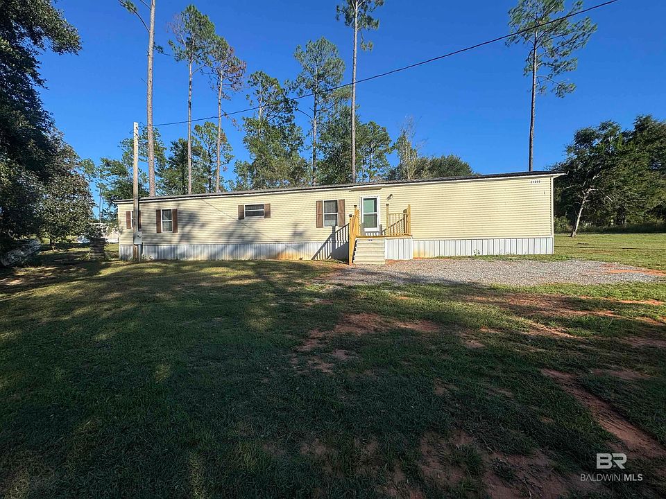 This little diamond in the rough is ready for someone that needs a small quaint place in the country just off Baldwin Beach Express in Robertsdale and convenient to everything. This older 3/2 1120' Mobile Home with no carpet just vinyl and vp flooring. Refrigerator with icemaker, flat surface stove, dishwasher, washer and dryer connections. Room sizes to be verified. Situated at the edge of 7.6 wooded acres (land not included in lease- only small lot Mobile Home is on) Access to the property is down a DIRT LANE just off Baldwin Beach Express. PLEASE READ: To save applicants time, etc. Make sure if you are requesting an application or wanting to tour the property that the following apply: State if you have pets because No Pets Allowed inside or outside. All correspondence by email or text. Applications may be requested by email or text and will be processed by Zillow, etc. or TransUnion Smart Move on a first come basis. Application fee is $43 per applicant over 18 years of age that will be residing in property to include credit inquiry and background check. First month's rent is $1200.00 and security deposit $1200.00. OWNERS REQUIRE A MINIMUM CREDIT SCORE OF 600. Gross combined income 3X lease amount ($3600.00). Must have proof of income last three months, and prior rental history verification. There will not be showings if applications are in progress. Due to insurance requirements, there are no above ground pools, trampolines, 4 wheelers, dirt bikes etc. allowed on property. Parking in designated area in front.
