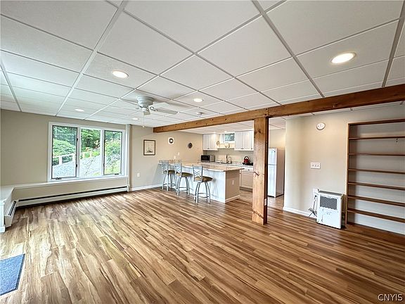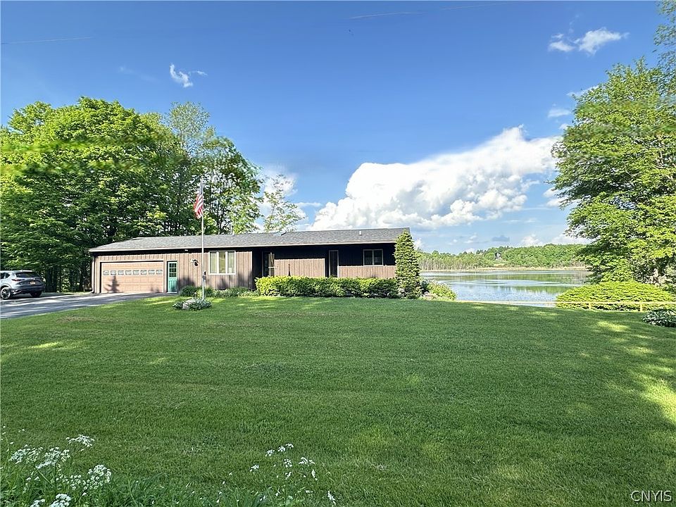 Before you even enter, you can tell this home has been meticulously maintained. This spectacular property features two driveways and two completely separate entrances for the upstairs and downstairs, making it perfect for dual living quarters. The first floor living area is completely open and leads to a three-season room that overlooks the picturesque Old Fly Pond. The lower level is also open, with a patio just outside the sliding glass doors, offering a perfect spot to relax and enjoy the view. Both levels include a kitchen, full bath, bedroom, laundry hookups, and stunning water views. Outside, the property has a large front yard and a side yard that leads to the water. Additional features include RV hookups for electricity and septic. The property is extremely private yet conveniently located just minutes from Syracuse. This home truly has so much to offer!
