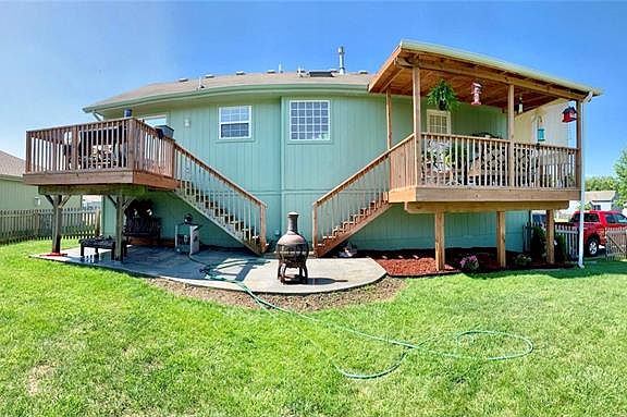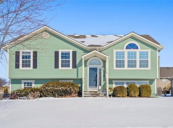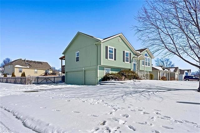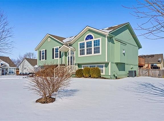 Perfectly nestled in the quiet, cul-de-sac neighborhood of Maplewoods Estates in Greenwood, MO. Sitting on a large corner lot just a couple doors down from the neighborhood park, this raised ranch is beautiful inside, meticulously cared for and is more than move-in ready. Boasting recent interior and exterior paint, new ceiling fans in every room, carpet and carpet pad throughout. This home's relaxing open concept with raised ceilings throughout the bright dining/living/kitchen areas flows perfectly with the gorgeous and durable main level HICKORY hardwood floor. Do not miss the perks included in the master bath with new shower, private corner jetted tub and its own walkout to private covered deck from the bedroom! The finished downstairs offers an extra room/office space designed with ample basement storage and a laundry area. Now the important part, the very spacious 3 car garage has new electrical and added outlets throughout for shop purposes, painted concrete, new garage door including motor/hardware and new low-e windows. Large, fenced backyard is ready for kids or pets and your springtime garden. Absolutely nothing to compline about here, just come and see!