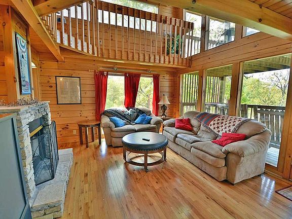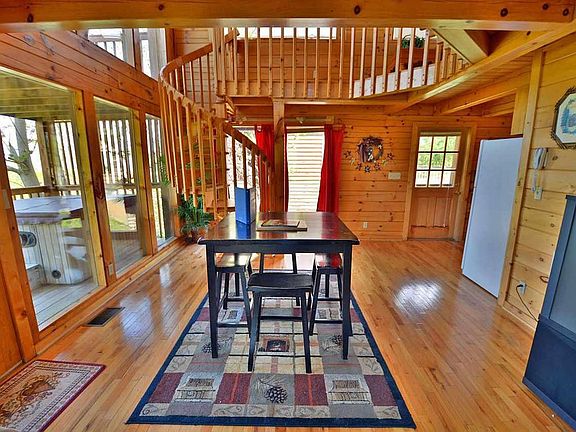 1 bedroom, 2 bath log cabin in Eagle Crest Resort! In a great setting with a very nice view. Great location! Convenient to most all area attractions. Features include a double sided fireplace in the living room and master suite, cathedral ceilings, large upstairs loft with a whirlpool tub and pool table, hot tub on the deck, and lots of windows to enjoy the view! comes fully furnished and decorated! Already setup great for overnight rental or a 2nd home.