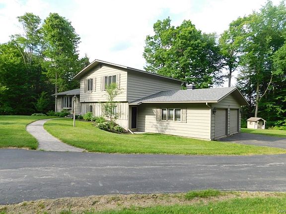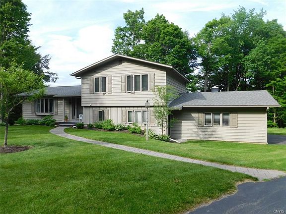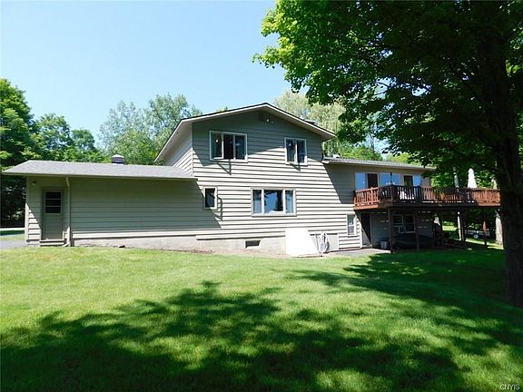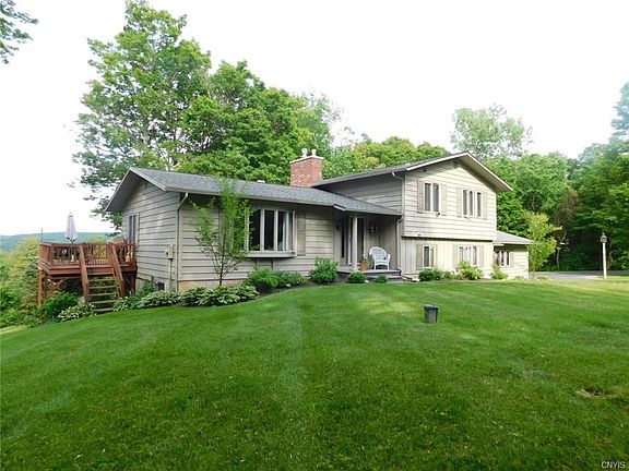 A slice of heaven on this secluded country cul-de-sac! Builders own home lovingly updated and pampered by the current owners. Million dollar "Adirondack" views with no homes in sight off the wrap around back deck. The stunning white kitchen was redesigned to take advantage of the views with two sliding glass doors and a panoramic window. Corian designer counters, new stainless appliances, cherry floors, pantry, lighted display cabinets and even a glass breakfast counter to take in the views while you drink your morning coffee. First floor bedroom, home office or in-law suite with outside door and full bathroom. Two fireplaced family rooms, bay windowed living room, large mud room and a formal dining room. Master suite with shared bathroom. New: Windows, roof, doors, and updated bathrooms.