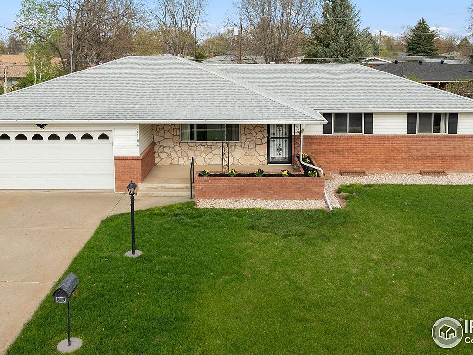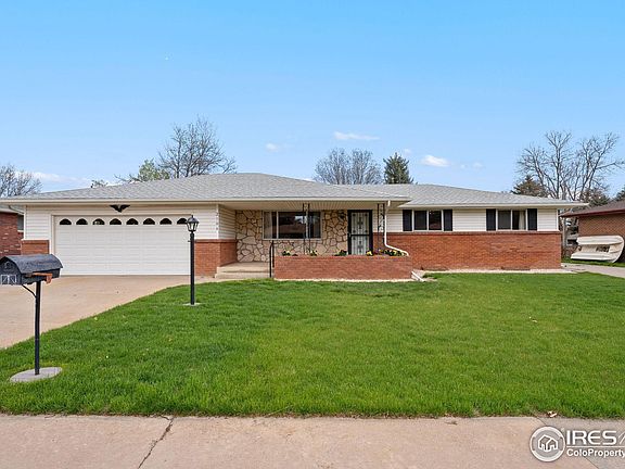This Mid-Century ranch home nestled on a spacious lot in the heart of Loveland offers a unique combination of classic design and thoughtful functionality. As you approach the home, you'll be greeted by a large front lawn and a covered porch, perfect for enjoying your morning coffee. A brick planter box adds a touch of greenery, while the cemented driveway on both sides provides ample space for parking your boat or RV. Step inside to discover a well-designed layout that artfully separates the living areas to create a sense of privacy and flow throughout the home. The kitchen is styled as a traditional galley, complete with avocado appliances that add a touch of vintage charm. A breakfast counter provides casual dining space, while numerous cabinets and the laminate counters ensure tons of storage and prep space for all culinary adventures. The primary suite is a cozy retreat featuring two closets and private access to a half bath, that conveniently connects to the laundry area. Additionally, two more bedrooms provide ample space for relaxation and personalization. Descend into the finished basement where a large recreational area awaits, complete with newer carpets that make the space feel fresh. An additional bedroom in the basement provides extra room for guests or hobbies. Enjoy the Colorado sun year-round in the enclosed sunroom. Outside, the large, fenced backyard provides even more space for outdoor entertainment or gardening projects, with a handy storage shed to ensure that all your outdoor equipment and extras are neatly tucked away. Located just a few blocks away from Lake Loveland, this home offers convenient access to amenities, including shopping, dining, entertainment, and more. Offers due on Sunday, 5/5, by 7 pm.