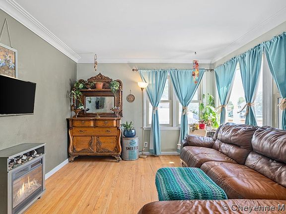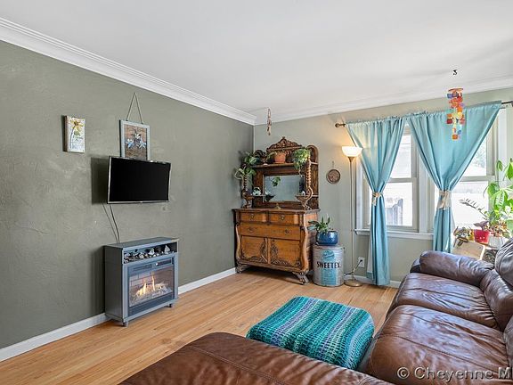 Home sweet, lovely home w/ 3 bedrooms, 2 bathrooms, & sunlight galore! Property features include vinyl windows, hardwood & tile floors, metal siding, separate dining space, a delightful kitchen, and a super-sized, fenced yard with the coziest covered patio! There is alley access to the back yard with options to add off street and/or RV parking, or a detached garage or outbuilding! The basement is finished with a large bedroom and bathroom, plus flex space which could accommodate a 4th bedroom! Excellent proximity to schools, downtown Cheyenne, the VA Hospital, Converse Ave. and E. Lincolnway!