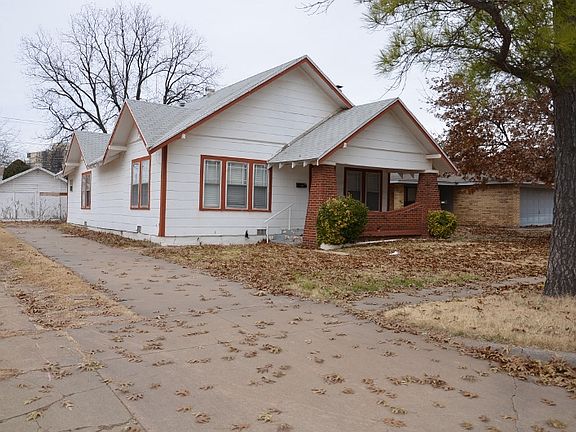 Cute Floral Heights 2 story home with 4 bedrooms. Gorgeous hardwood floors. Formal dining room. Updated kitchen and baths. Master bedroom is downstairs. Living room has a fireplace. The large covered patio has a picket fence around it. The fenced backyard has a storm shelter and a detached garage.